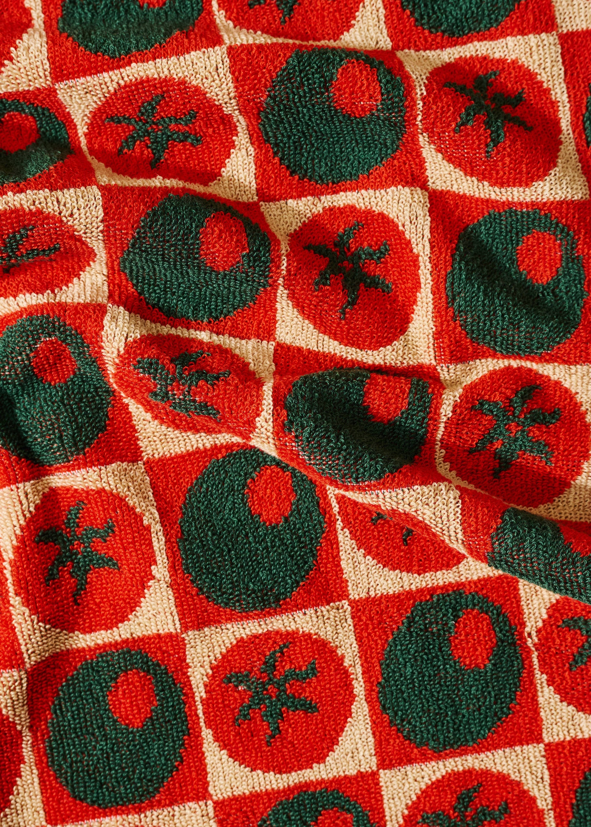Heirloom Heat Checked Olive and Tomato Cotton Terry Cloth Towel