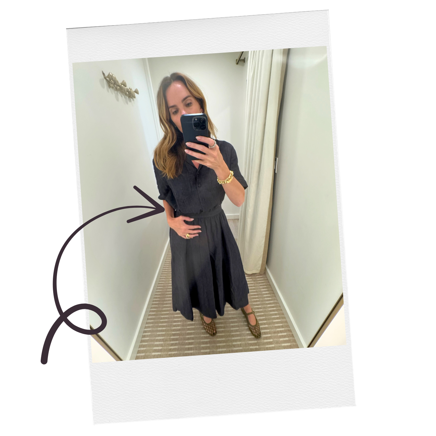 “This denim mini dress with the Dolan sleeve paired with a leather wrap belt elevates this style from day to night. I'm loving our newest dress arrivals for the season from silk to denim to knit.”